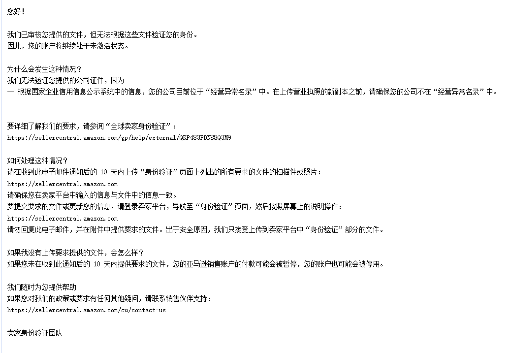 目前所有公司异常的,注销的,消费者方案都过不了 最近大面积出现了这个情况 消费者法案确认了两次资料没有通过,本来打算换新主体,现在亚马逊要求换主体前解决经营异常问题。 之前来说,消费者法案,只要在后台一直点点点就可以过,现在不行了,还要查公司是否异常。...