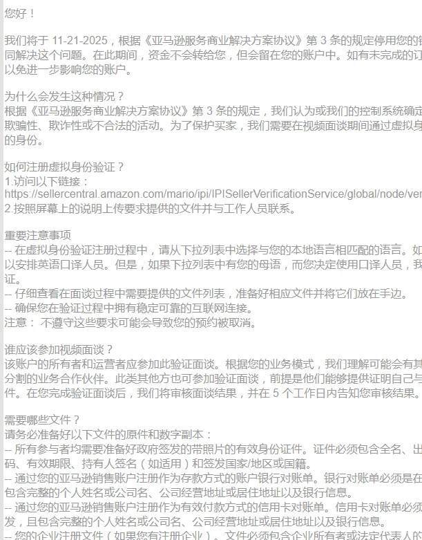 “我的店因为‘协议三’被封了,亚马逊要求视频验证,但我感觉大概率过不了……现在账上的资金被冻结,还有希望申诉回来吗?”最近,我们收到来自卖家的这类求助,字里行间充满了焦虑与绝望。 首先,我们必须清晰地认识到“协议3”是一个“万能条款”,几乎涵盖了所有亚马逊认...