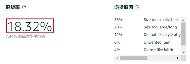 老王发现类目的平均退货率在过去30天为18.3%,比自己的退货率25%要低不少。