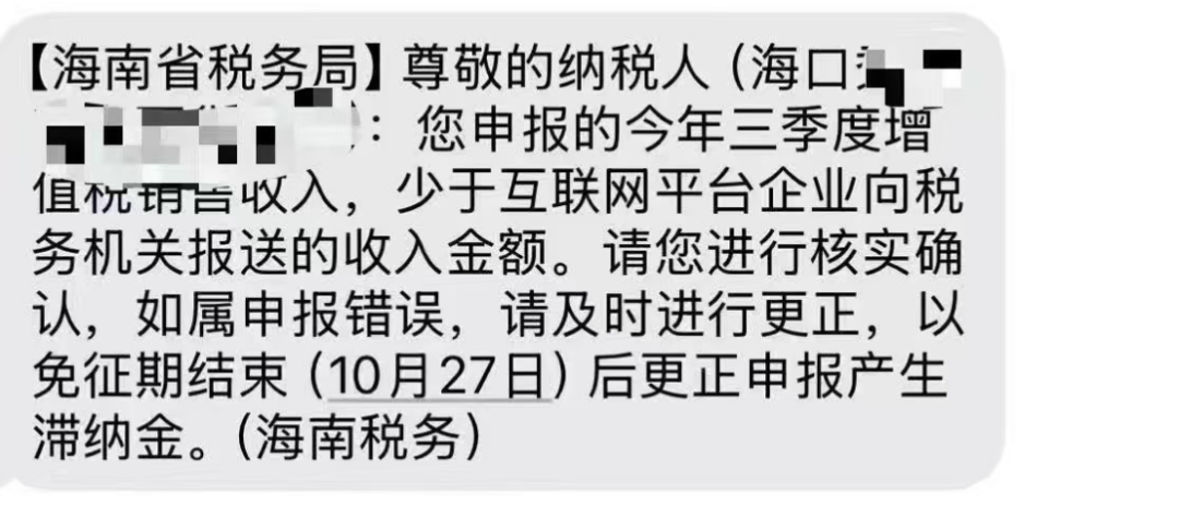 今天群里有卖家反应,卖家在社群反馈,收到了当地税务部门发送的税务预警短信。短信内容大致如下: 尊敬的纳税人:您申报的今年三季度增值税销售收入,少于互联网平台企业向税务机关...