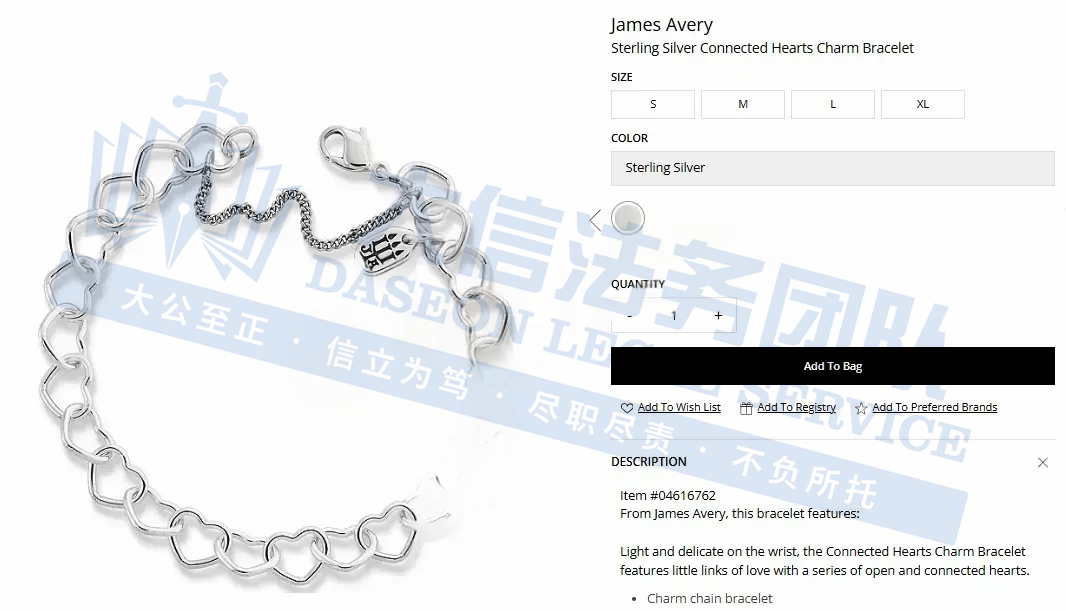 JAMES AVERY珠宝品牌 案件号:26-cv-00245 立案时间:2026年1月9日 原告:James Avery Craftsman, Inc. 代理律所:DYK...