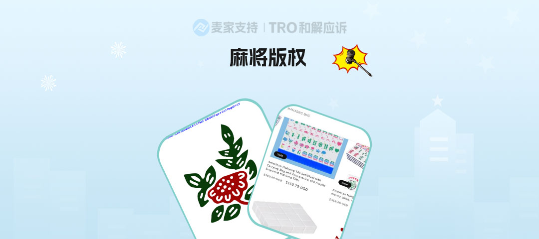 本案是West Atlantic Law Firm, PLLC代理国人卖家Tingting Chen针对其版权作品发起的维权,涉案版权号为:VAu001534208,包含9张麻将图案作品,该系列作品于2021年创作完成,并于 2024年8月27日取得版权认证。...