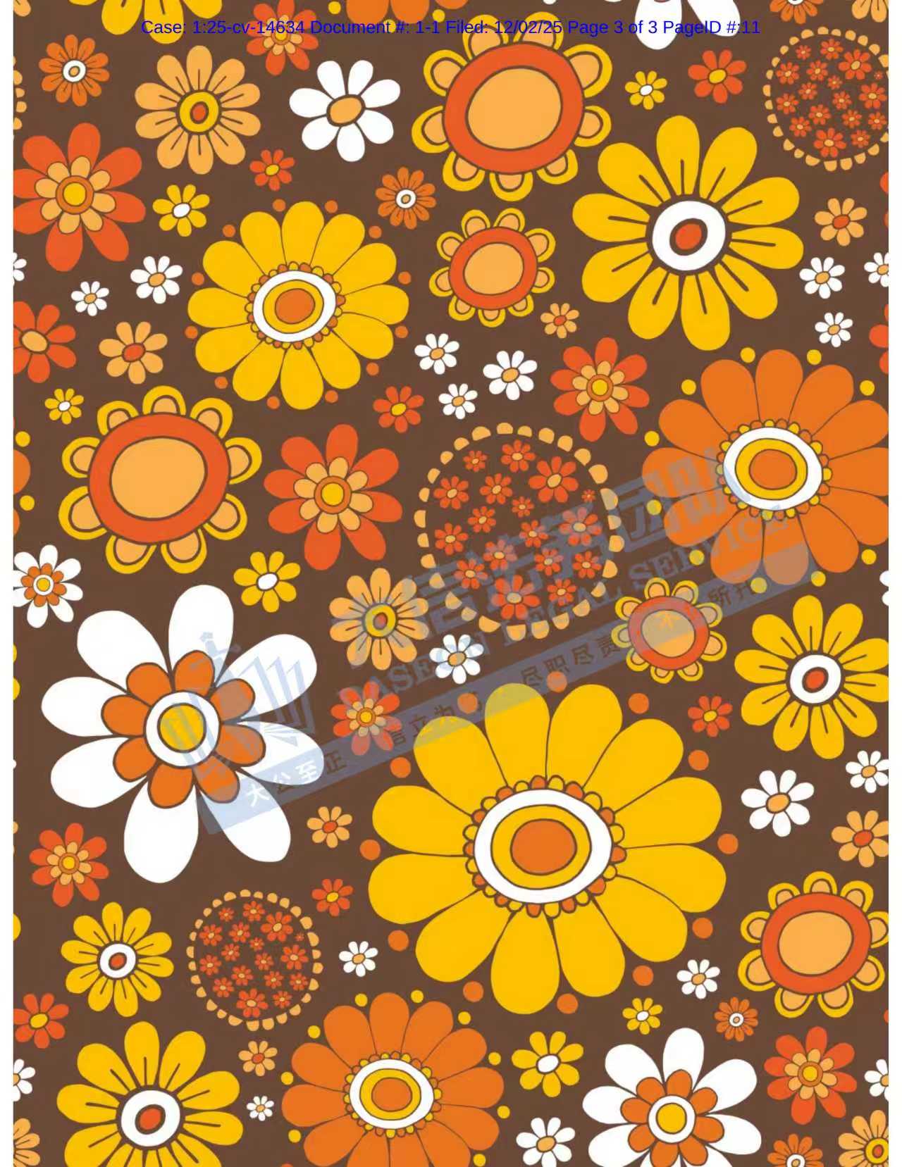 本案是keith律所代理英国艺术家Rachael Taylor发起的版权维权案件,涉案作品为一张 1970年代小雏菊花卉图,该作品于2025年6月24日获得美国版权认证,版权号为:VA 2-455-354,被广泛用于面料印刷、家居装饰以及礼品包装等多个领域。未...