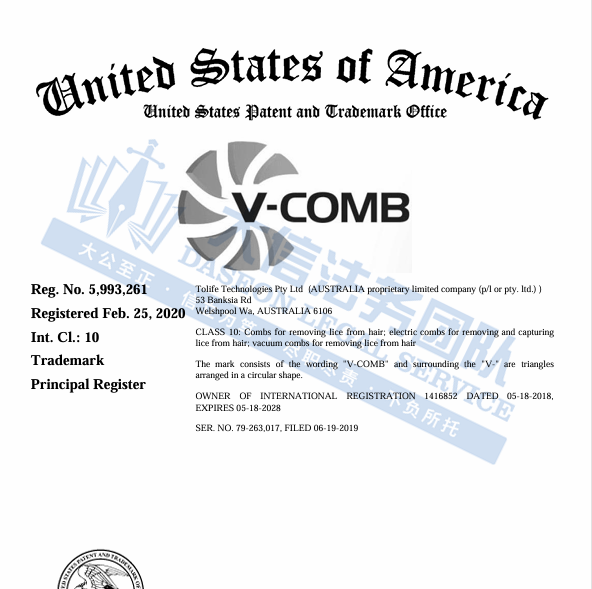 V-COMB 电动除虱梳 案件号:26-cv-20039 立案时间:2026年1月5日 原告:ToLife Technologies Pty Ltd et al 代理律所:Boies Schiller Flexner LLP 受理法院:佛罗里达南区地...