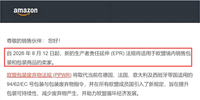 欧洲站又出新规!亚马逊发布通知:欧盟包装废弃物法规(PPWR)将于2026年8月12日起正式生效,提醒符合要求的卖家为该法规做好准备! 什么是欧盟包装废弃物法规(PPWR)? 欧盟包装废弃物法规(PPWR)于2025年1月22日发布,旨...