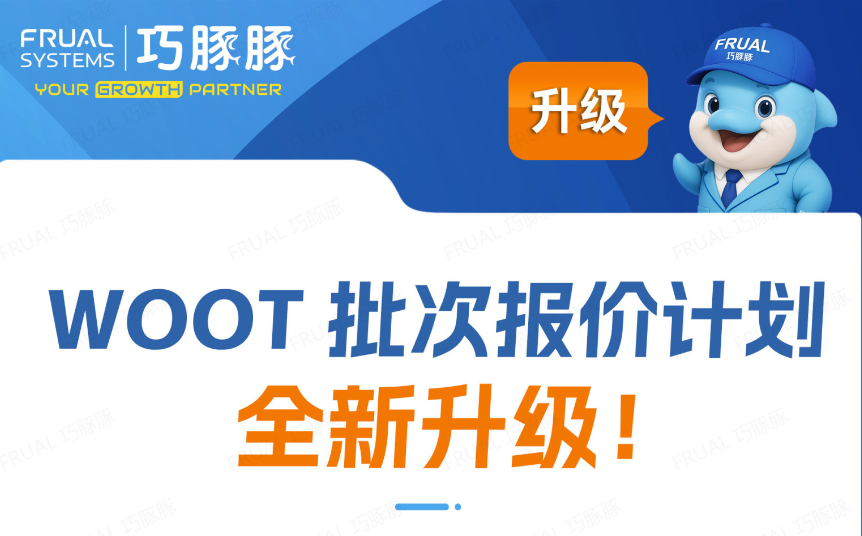 Frual 巧豚豚关于 WOOT 批次报价计划升级 公告 各位卖家朋友: 进入 2026 年,亚马逊流量竞争愈发激烈,新品冷启动慢、老品冲排名难、库存压力大等问题,让不少卖家陷入增长瓶颈。 为了帮大家更好地利用 WOOT 这个合规增长工具,巧豚豚带来了重...