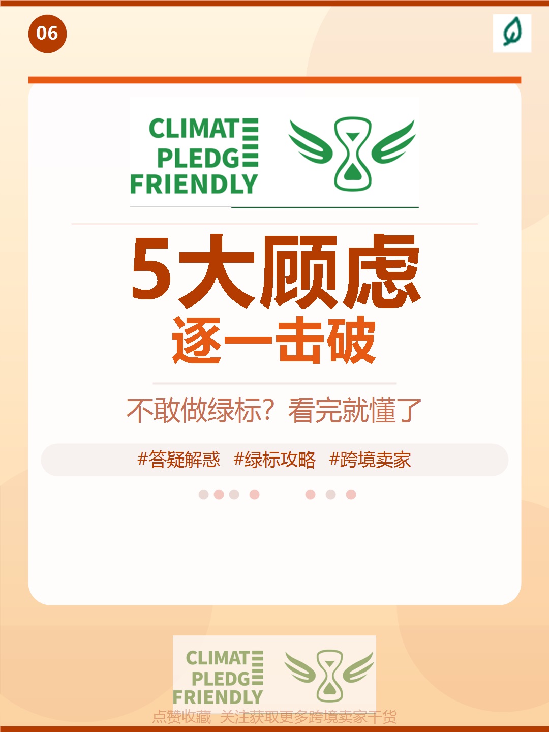 你信不信?你不想做绿标?你的5个顾虑,我来逐一击破! 做了1000+家亚马逊卖家绿标认证,这些担心根本不存在 和很多亚马逊卖家聊过之后,我发现大家不想做亚马逊气候绿标,基本都是因为这5个顾虑。 今天逐一击破,看完之后你会发现这些顾虑根本不成立! 顾虑1、 流...