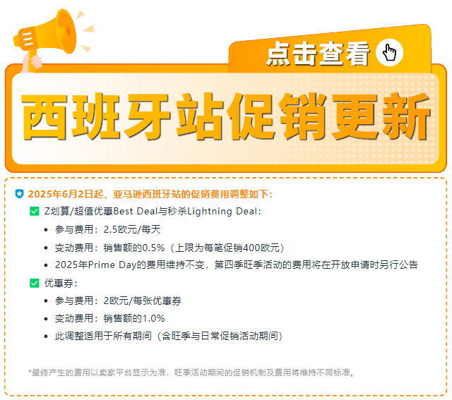 亚马逊美日英法德意西站点促销费用调整,卖家速看!