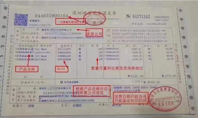 (4) 发票上的ASIN是和你店铺主卖的ASIN一致。