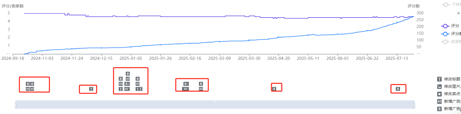 从链接排名和评论增长来看,异常的点不算特别多。其实分析产品,可以重点关注,它新品的操作手段,以及它流量爆发的手段。今年4-5月他降了3-4美元价格(有配合价格做推广的),排名一下冲到大类5000名。你可以看对方在这个时间段前后的周的流量变动情况。举一个例子,比如竞品4月14这周排名是8000,4月21日这周排名就到了5000,那么说明他的销量是增长了的。销量增长一般取决于流量增长(因为转化一般相对波动不大),那么你可以用软件排查一下对方的流量架构,它4月21日这周关键词流量发生了什么变化?比如是不是某些核心词排名上升了,推荐流量上升了等等。然后我们可以再进一步分析,例如对方推荐流量上升了,获得了XXX的推荐流量,你可以进一步用SIF剖析对方的推荐流量来源,基本可以扒得干净。