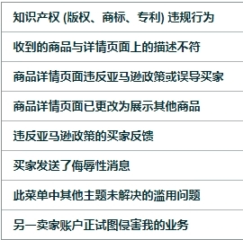 2) 后台举报滥用行为:举报滥用行为 - 商品详情页面违反亚马逊政策或误导买家/违反亚马逊政策的买家反馈。