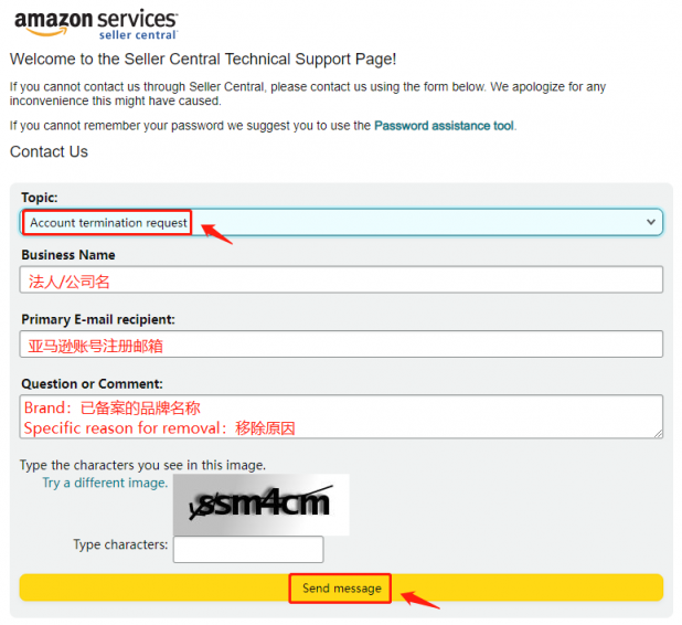②选择“Account termination request”,并填写相关信息;