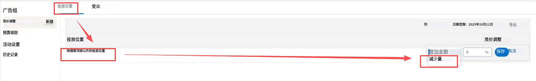 2、是,如果你想要减少其他位置的投放,在SBV的编辑里,搜索位置可以尝试减少其他位置投放的浮动比例