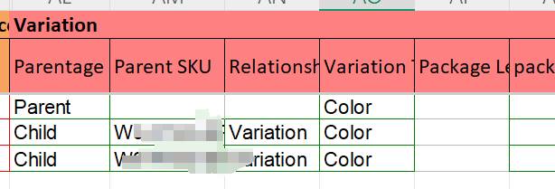 2. 保证信息一致后,如果用小类合并报错,我目前是用大类模板解决的,表格除了基础的Product Type, Seller SKU, Brand Name, Update Delete, Product Name, Product ID, Product ID Type, Item Type Keyword这些外,再填下下面变体信息 如下图这样