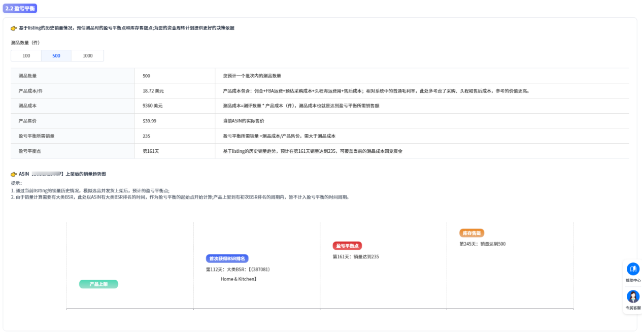 你还可以在【 利润分析 】测试你的新品利润、盈亏平衡点;