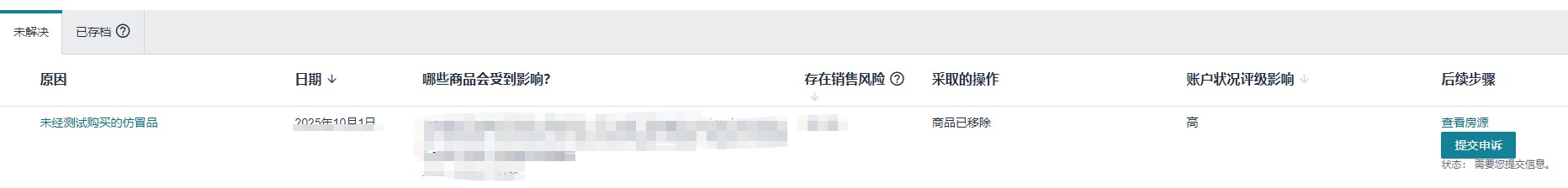 意大利站点LISTING大面积收到知识产权投诉,提示是“未经测试购买的仿冒品”,