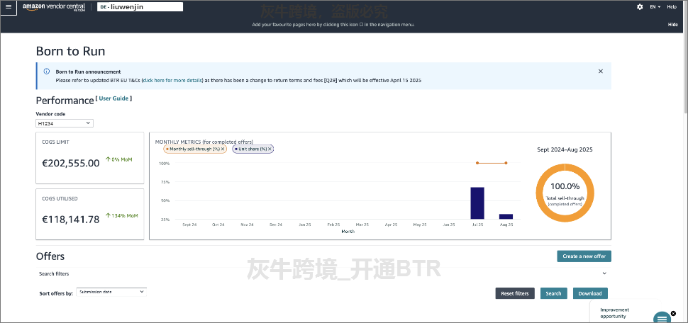 BTR(Born To Run)额度是指供应商在亚马逊Vendor Central中,使用BTR项目为新品或重点ASIN申请“预置采购量”的可用上限。简而言之,就是你在BTR框架下可一次性提交的最大COGS金额或最大件数的权限范围。