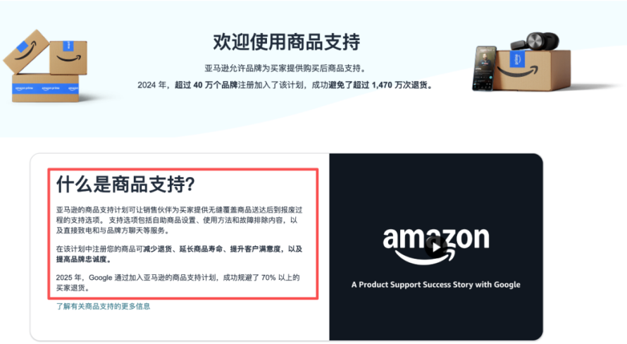 最近,亚马逊又悄悄上线了一个新功能,亚马逊商品支持(Amazon Product Support)。