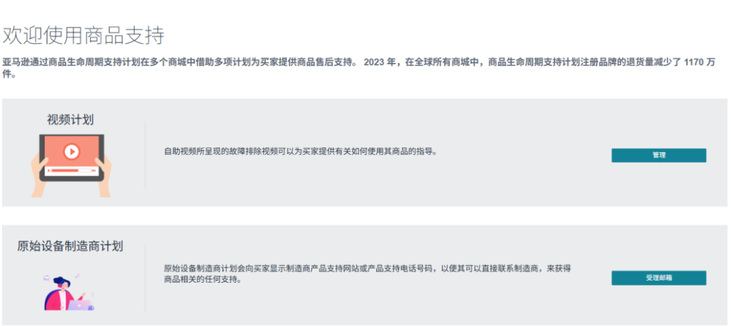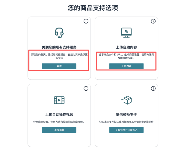 近段时间,亚马逊在重点强调“商品支持”功能,鼓励卖家积极激活以优化售后服务。该功能允许卖家从多个维度自主设置售后支持,包括:提供配件补寄、展示产品内容文档、开放站外联系方式等。