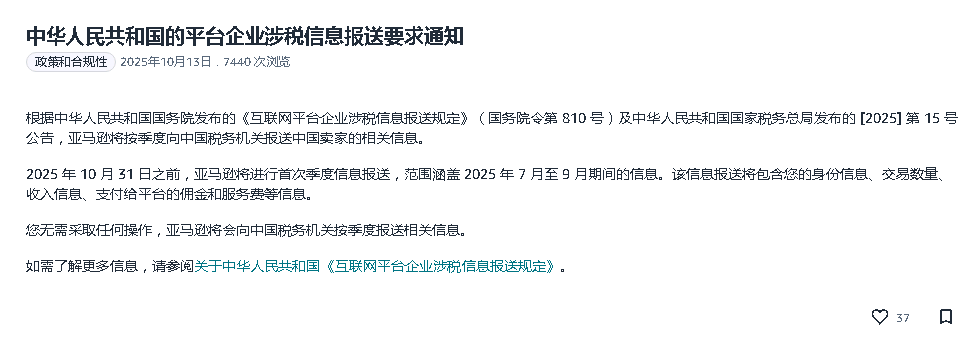 2025 年 10 月 31 日之前,亚马逊将进行首次季度信息报送,范围涵盖 2025 年 7 月至 9 月期间的信息。
