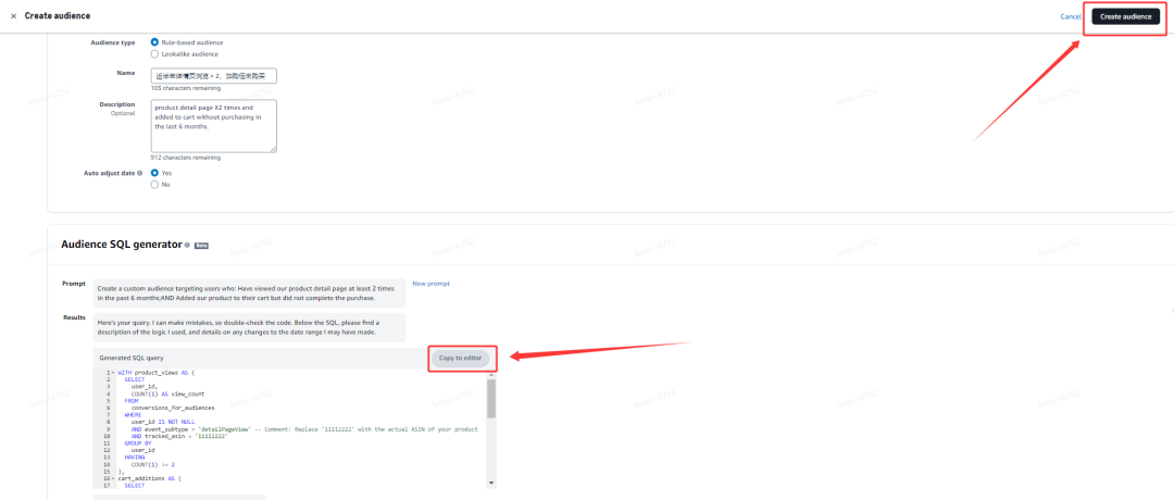 这里面就出来一个新的广告打法,基于亚马逊广告算法的核心机制:在搜索结果页的个性化展示机制下,同一关键词在不同用户端的展现排序存在显著差异(即"千人千面"现象)。通过为高转化潜力人群设置溢价,能够有效提升广告在该特定人群搜索结果页的竞争力。也就是当我的目标客户(浏览过我详情页面两次以上)搜索相关关键词时,我们的广告将获得更高的曝光优先级,从而增加出现在搜索结果首页的概率。