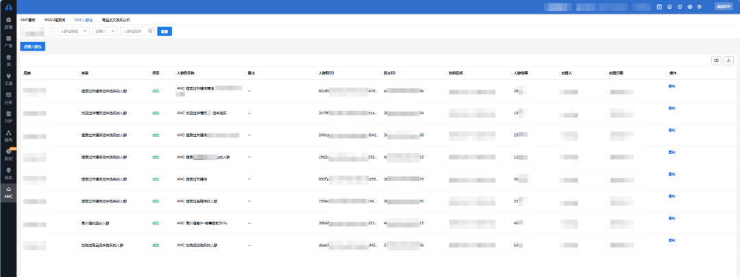 前面我介绍的是怎么通过领星创建AMC人群包,下面我在介绍下通过后台创建人群包(主要是后台更全面,领星目前是有一些现成的模版,操作简单)。介绍的内容有点多,大家看文章不仅仅可以获得一些新内容,我更希望大家可以自己落地去实践一下,所以这个板块大家可以自行阅读,没有什么比自己去学习更加印象深刻的了。
