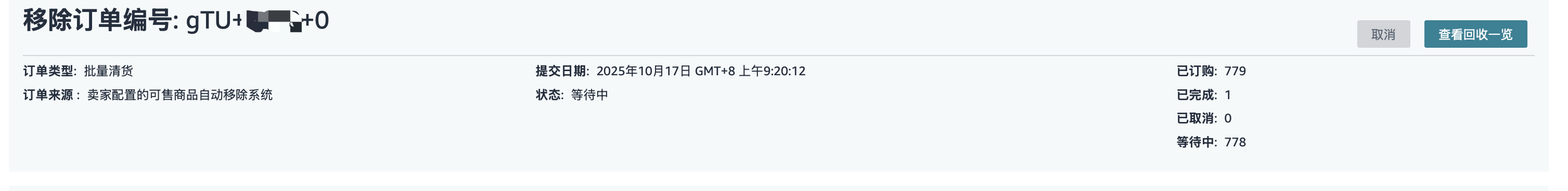被亚马逊创建了批量清货移除订单,其中有一个移除订单有几十个sku,差不多800件商品。