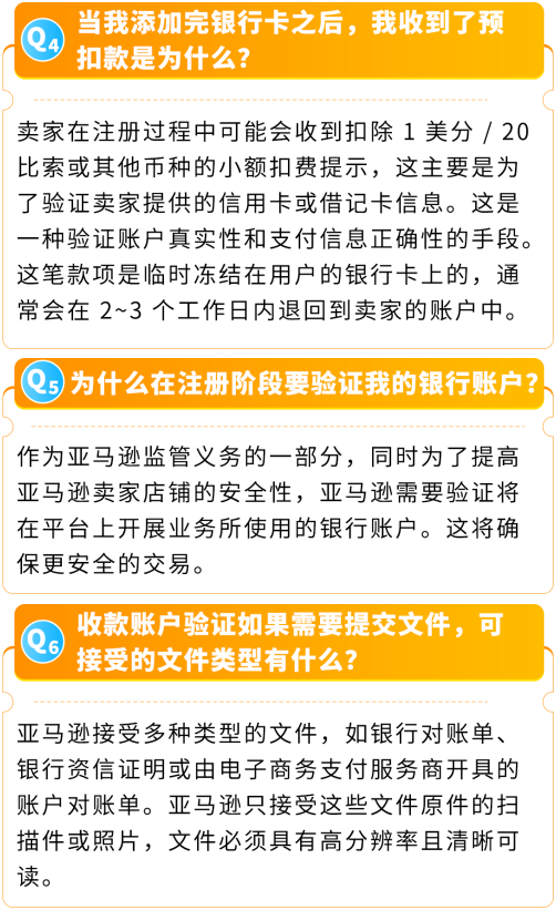请注意,该银行账户需要在注册亚马逊卖家账号的法人或企业名下。