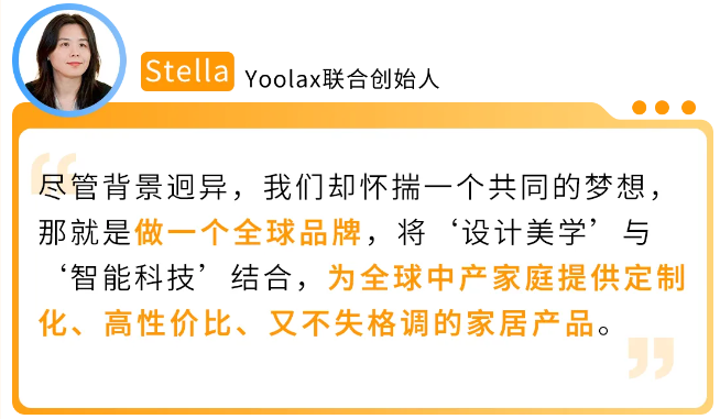 Yoolax的故事从一开始就注定了“不寻常”。Stella介绍,2019年,联合创始团队源于三个背景迥异的年轻人:核心创始人是美学设计师出身,深耕家居领域;技术负责人是软硬件技术专家,妥妥的IT男;而Stella长期在外企工作,从事全球采购与市场工作超过15年。
