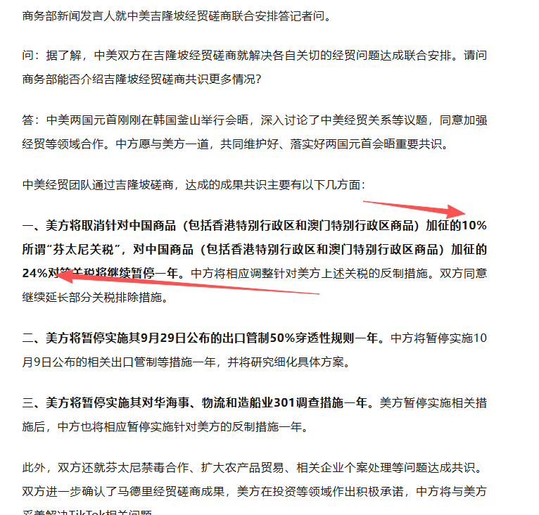 中美两国元首刚刚在韩国釜山举行会晤 ,谈完了,关税降了34%?