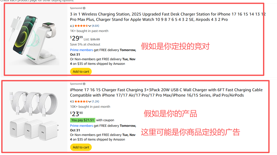 2. 商品详情页-直接展示在定投ASIN的详情页面下方,能够直接对竞对的转化产生影响,抢夺流量