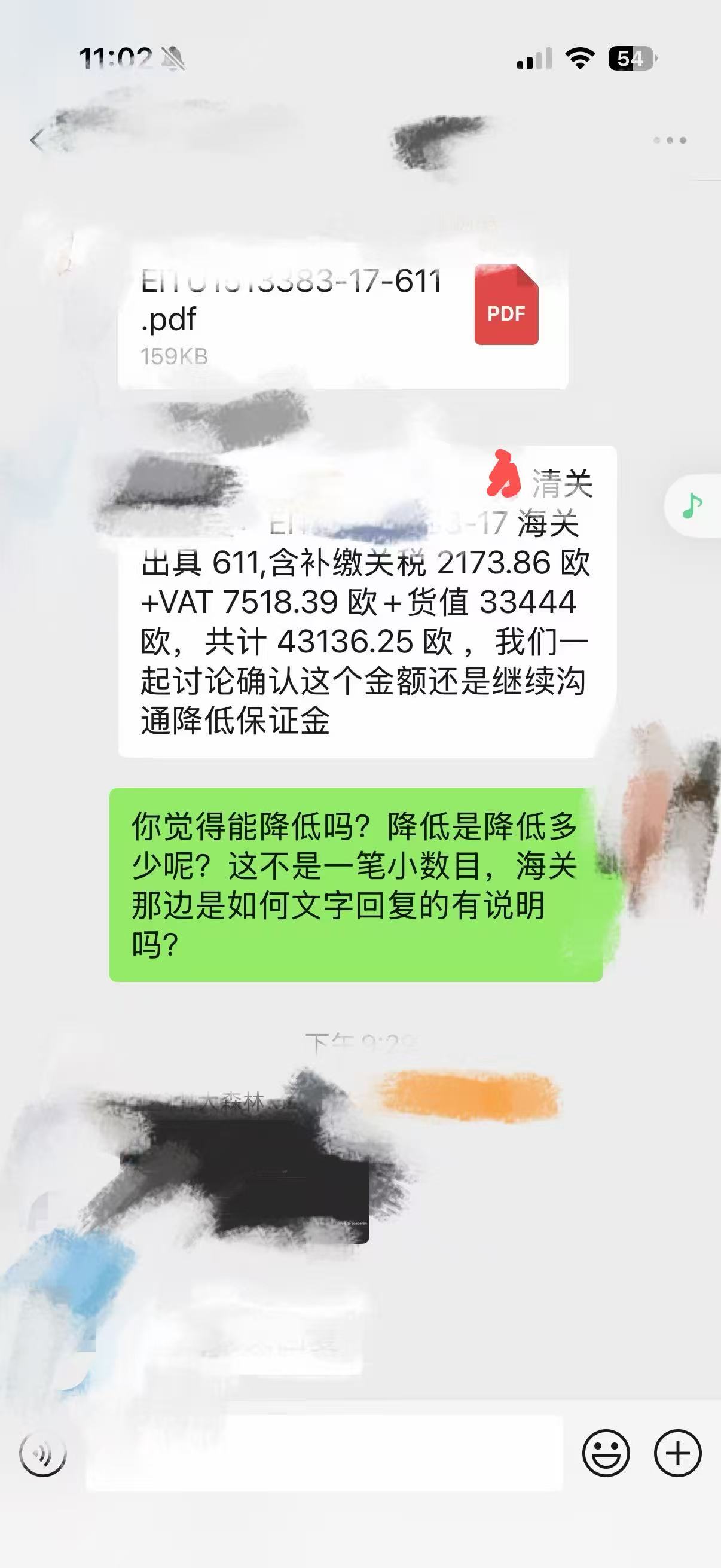 货代一直想办法说服我们交保证金(保证金是通过清关行代交)然后过了几天,货代在群里让我们再一次讨论保证金的事,问了这么一句话:我们一起谈论确认这个金额还是继续沟通降低保证金。
