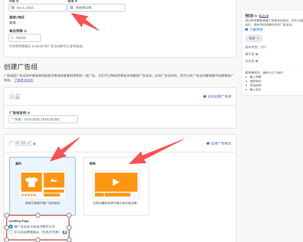 好的,我们尽量简化流程,只抓核心。创建广告活动后,你会看到“广告格式”选项,我翻译为广告投放形式。