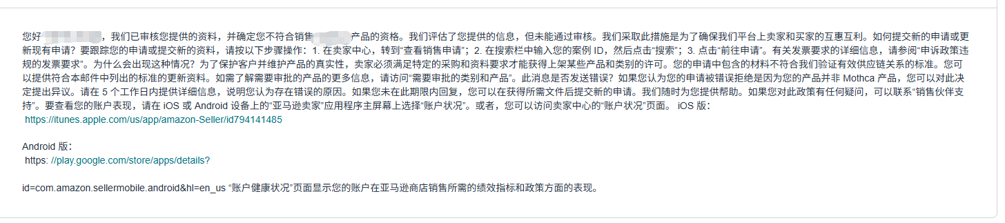 论坛上看到很多人提到brand gating,但是我们问了品牌客服,品牌客服说他们没有brand gating 这个东西。现在完全搞懵了。不知道问题出在哪里,以前都是授权完品牌就可以跟卖了,最多提交个授权书发票也都能跟了,这次不知道是什么原因,希望有碰到过类似问题并解决了的卖家指点一二,另外补充一下我这个类目也不是特殊类目,不需要审核,亚马逊拒绝的邮件内容如下: