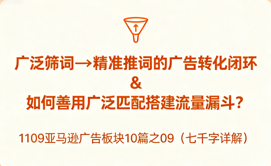 【首发】广泛筛词→精准推词的广告转化闭环 & 如何善用广泛匹配搭建流量漏斗?1109亚马逊广告板块10篇之09(七千字详解)
