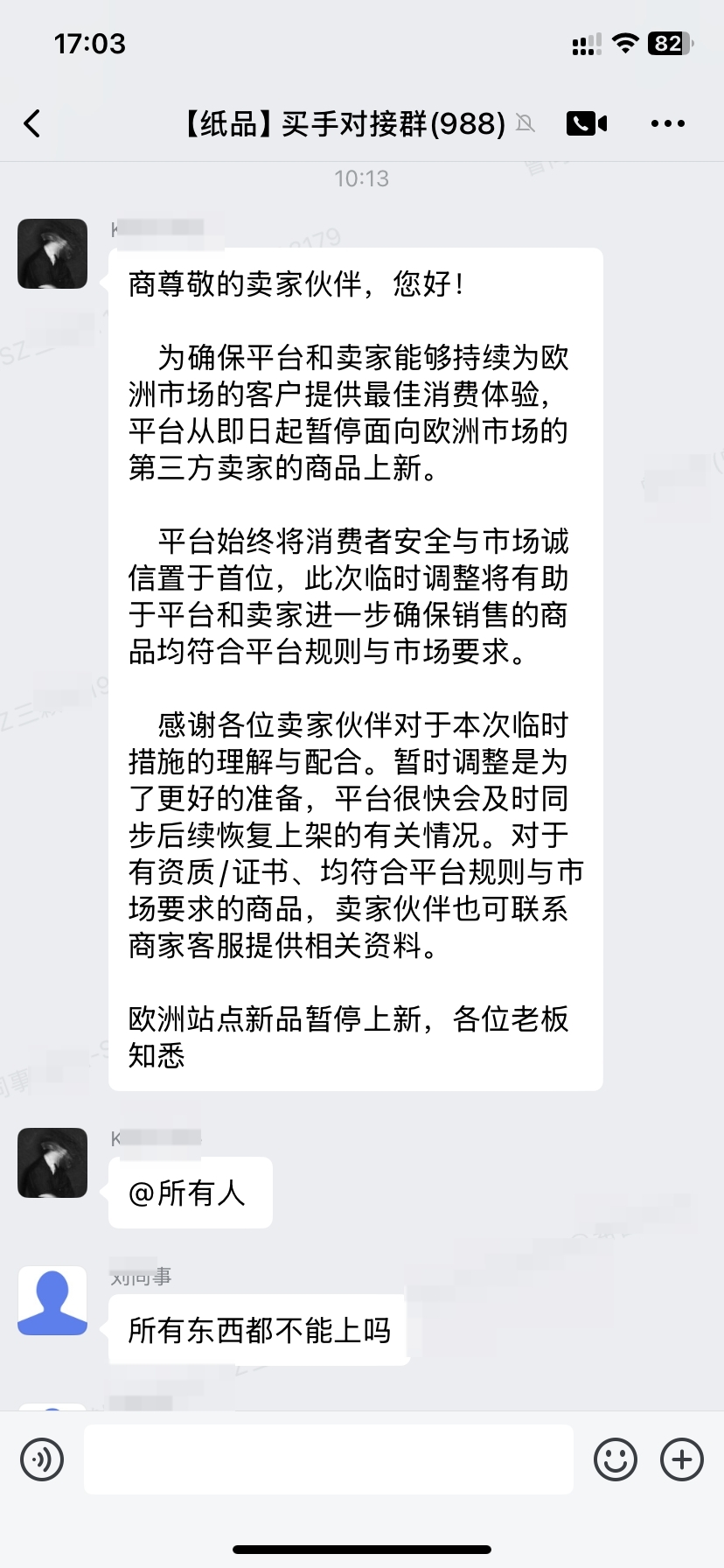 平台处理反应:管制刀具和非管制刀具一律下架,老品除了成衣类保留销售,新品全品类禁止上架欧洲所有站点。