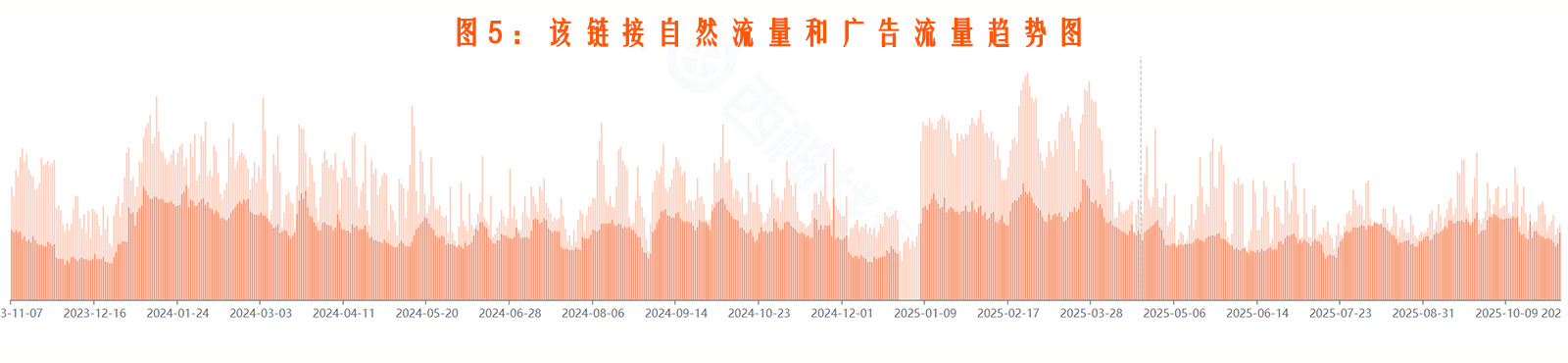 5.看竞品的流量高峰期,如图5:我会结合关键词的趋势,竞品的流量的趋势图,以及广告流量增长比较明显的地方,那这样我在制定推广计划的时候就有个参考,比如说我什么时候入场上架,要计算一下到货的时间节点是卡在流量的谷底还是爬坡期,对应的每个推广节点我的每批货的备货数量,我给的广告预算,竞品在这个节点的广告拉升的动作的目的。(抓好进场的时机节点,广告引入流量冲排名的冲刺节点,自然和广告位置置换的盈利节点,广告的防守节点)