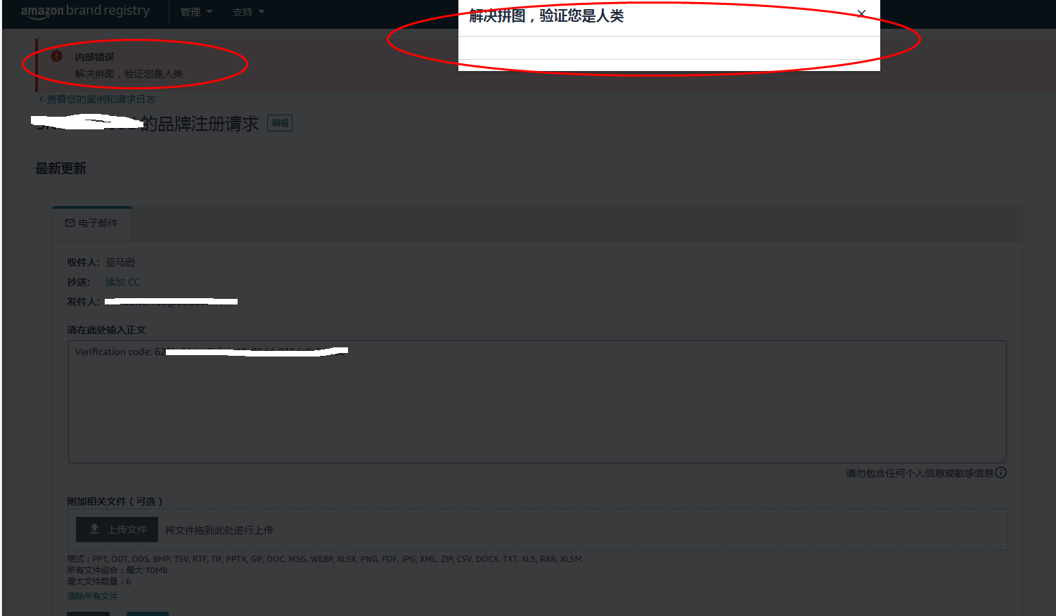 品牌备案发送验证码时,弹出:拼图验证 证明您是人类,可是并没有拼图显示,请问怎么解决?