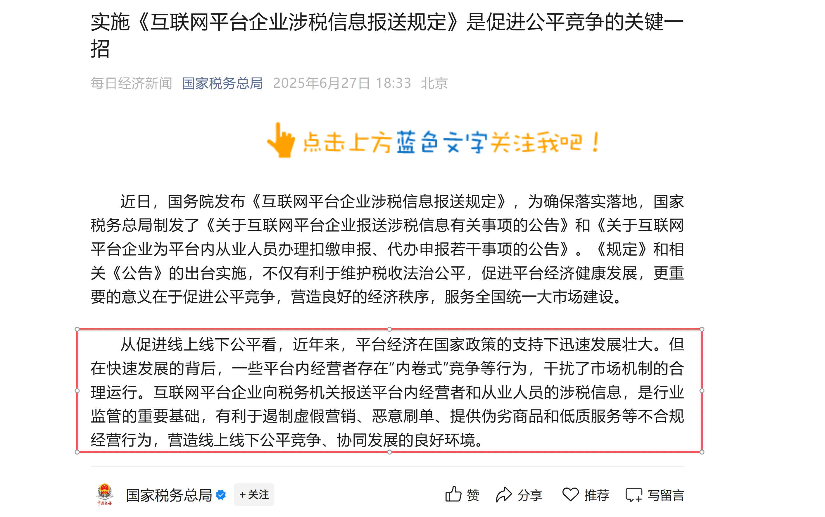 关于税务报送反内卷,这可不是Lee说的,是国家税务总局说的(打脸不?):