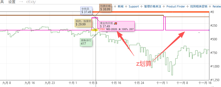 通过keepa和西柚都能看到它平时的价格是29.99,原价37.99。会员大促期间的活动价29.99,现在14天促销价格也是29.98,怎么做到的?