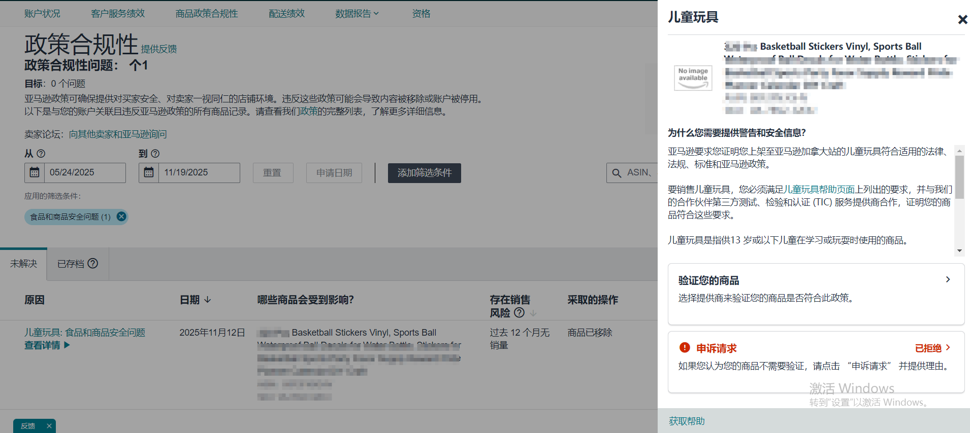 急!亚马逊加拿大站儿童玩具: 食品和商品安全问题,产品链接由其它站点同步过来的,该如何申诉?