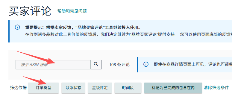 1. 支持按子 ASIN 搜索,可筛选订单类型、联系状态、星级评定、时间段等条件,精准定位目标评论。