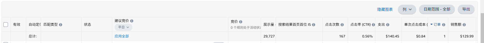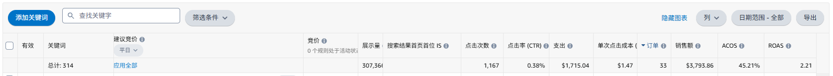 这么大的库存压力,还在用长尾一个个慢慢测试,得到的数据反馈也少,哪怕acos是好看的意义也不大,何况现在acos表现也很差,并且帖主需要衡量库存和动销率之间的比值情况,那么大的库存压力你还想试图通过农村包围城市的打法去测试,时间成本太高了,最好全方位用各种核心词去测试,如果数据表现还是一般--建议跟公司做好沟通,而不是死磕广告