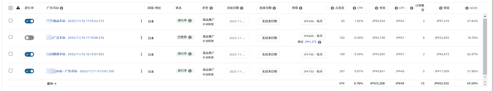 3. 自动一般就正常开紧密和同类,手动的词也没什么思路,就把自动跑出来出单的词和asin放进去了,也没怎么否词(才开售没多久,不敢随便否),手动广告里词的开关和竞价也是频繁调整,listing都小幅度优化过,产品之前也是各变体一点点的出单ing(有些卖的好的字体已经接近或者已经断货了),现在黑五几天后产品排名都降了很多,销量也要没有了