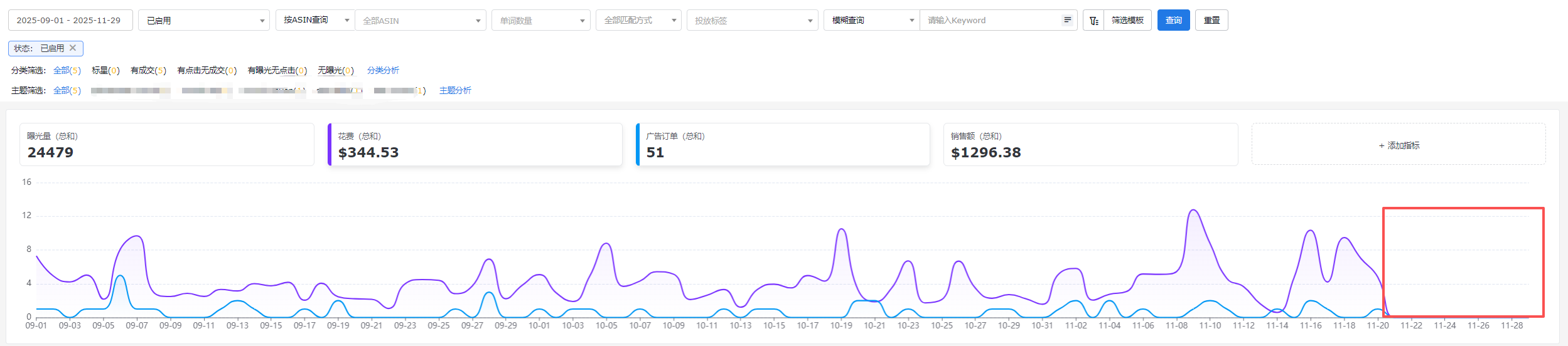 7,SP类型的广告组,曝光,花费都在明显减少,虽然还是有单量,但是出单量大不如从前。