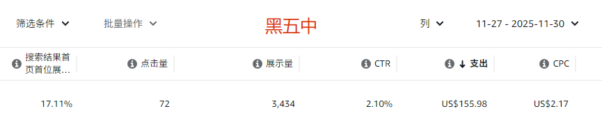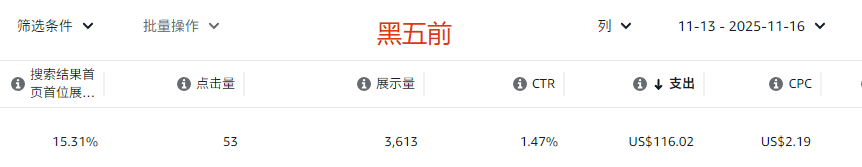 3. 黑五期间补充的低价活动,关键词与 1 相同,但竞价较低,固定竞价