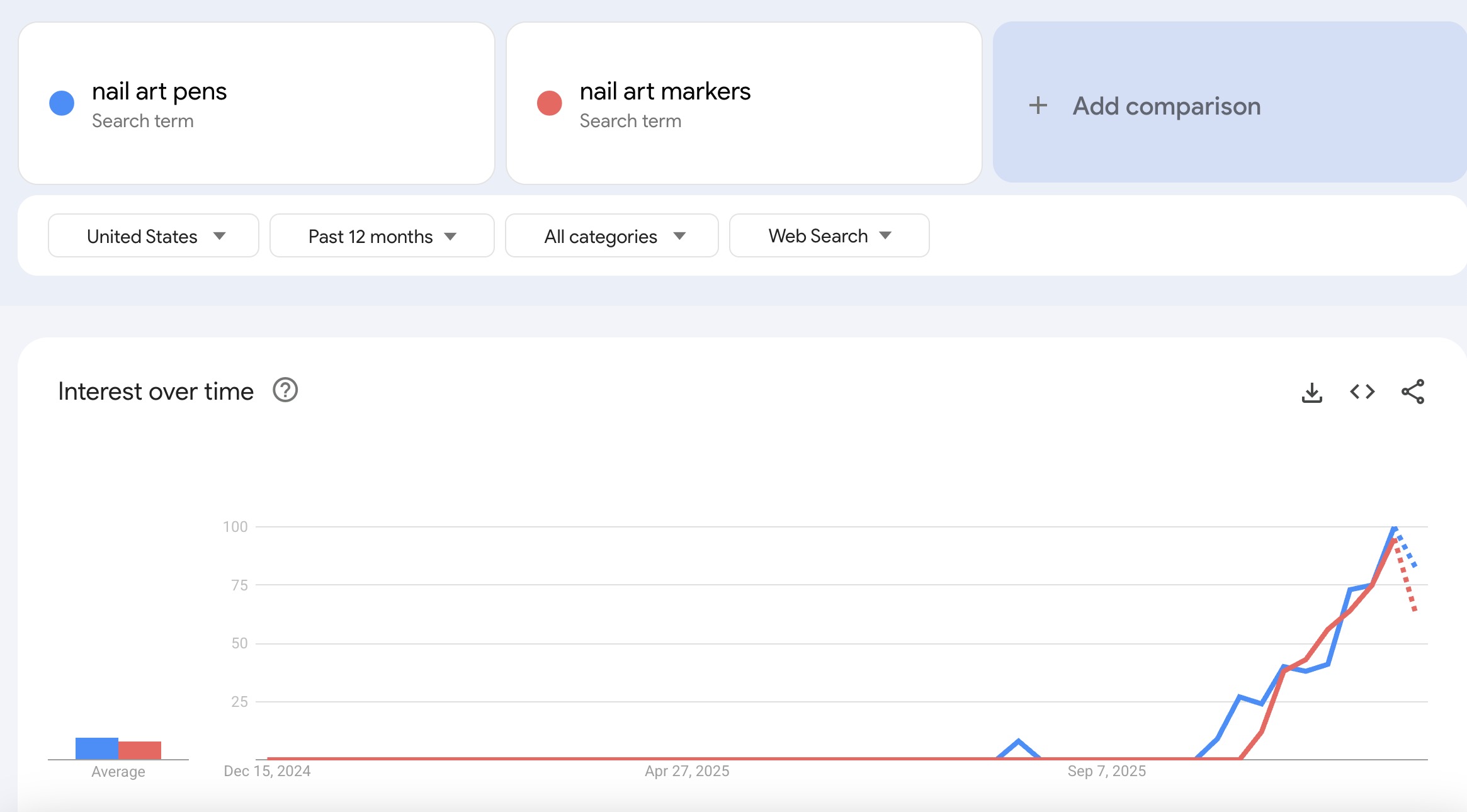 1. 谷歌趋势来看,这个类目的两个核心关键词确实最近一个月呈爆发式增长。