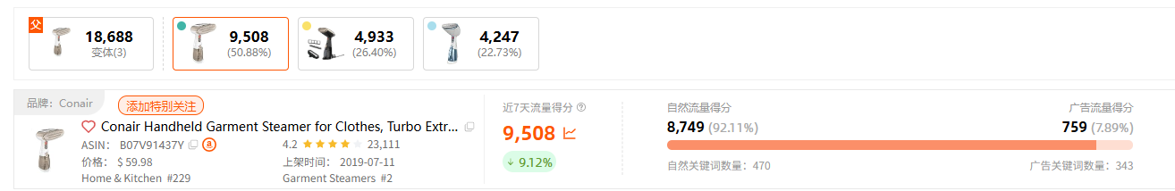 3)目前为变体开设的广告组是长尾词的流量补充,以及对标竞品的商品投放。