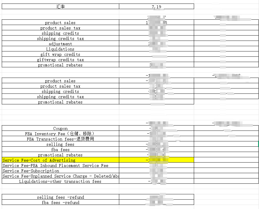 算了一下,如果按照我图里的数据计算,汇率 7.19 是最接近的。费用部分不包含广告费用。大家都是怎么做的?