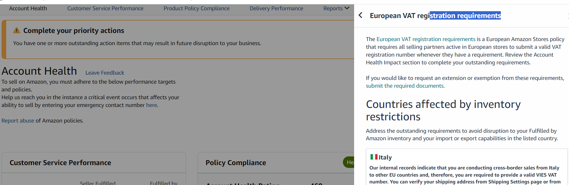 于是,这些移除不了的意大利FBA库存,导致店铺被检测到需要注册VAT号